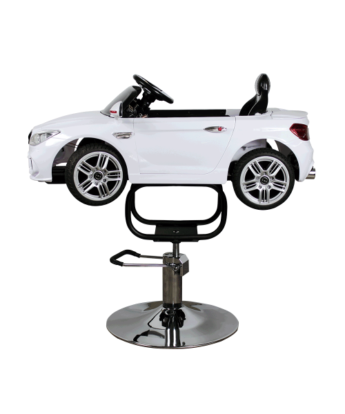 Детское парикмахерское кресло "Машинка 01" – отличный выбор для комфорта маленьких посетителей бьюти салонов. Модель выполнена в виде белой гоночной машинки BMW с ярким привлекательным дизайном. В ней есть ключ зажигания, при повороте которого включаются фары и задние фонари. Для удобства малыша автомобиль оснащен комфортным сиденьем с высокой спинкой. Машинка установлена на металлический каркас и устойчивое хромированное основание в форме диска. Высота кресла регулируется с помощью надежного гидравлического подъемника от 845 до 945 мм. Данная модель подходит для детей от 3 до 6 лет.