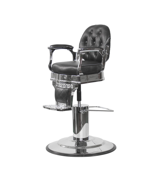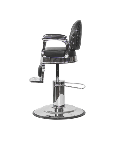 Функциональное оборудование для обслуживания юных клиентов. С такой мебелью для барбершопа станет возможным обслуживание детей в собственных стильных креслах. Эффектная декоративная прошивка выгодно подчеркивает стиль кресла в барбершоп. Внешняя сторона спинки и подножка прошита в форме ромбов. Внутренняя часть сидения украшена большими пуговицами. Широкое посадочное место и подлокотники позволят комфортно расположиться на время проведения процедур. Надежный подъемный механизм позволит мастеру подобрать оптимальную высоту во время работы. В качестве обивки мягких элементов использована экокожа. Качественный материал не впитывает влагу и грязь, а также не вызывает аллергии. Наполнитель – упругий поролон, не оставляющий вмятин. Каркас, подлокотники и ножная часть выполнены из прочной стали. Основание круглой формы имеет резиновую накладку, что предотвратит скольжение и сохранит напольное покрытие. Хромирование металлических элементов защитит от влияния коррозии и влаги.