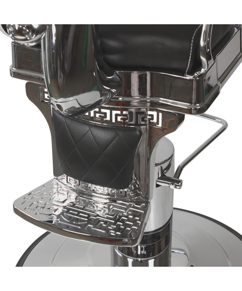 Оригинальная модель, которая несомненно привлечет внимание маленьких клиентов. Эффектным элементом кресла является декоративная голова лошади. С внутренней стороны спинка кресла украшена декоративной прошивкой с круглыми пуговицами. Внешняя сторона сиденья украшена прошивкой в форме ромбов и металлическими пуговицами по краю. Подлокотники дополнены стильными накладками. Для удобства маленького клиента в кресле предусмотрена подножка. Для безопасности в комплектацию входят ремни, которые надежно фиксируют ребёнка. Для создания каркаса, основания и декоративной детали использована прочная сталь. Хромирование металлических элементов защищает от коррозии и придает креслу массивный внешний вид. На круглом основании предусмотрена специальная резиновая накладка, предотвращающая скольжение по полу. Обивка кресла в барбершоп – фирменная экокожа. Благодаря устойчивости к влаге и загрязнению, за материалом просто ухаживать. В качестве наполнителя использован упругий поролон, способный к самовосстановлению.