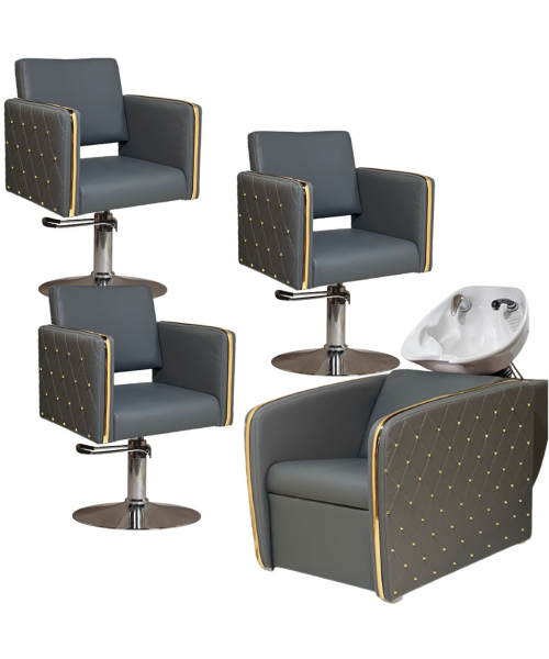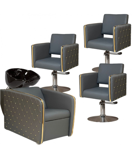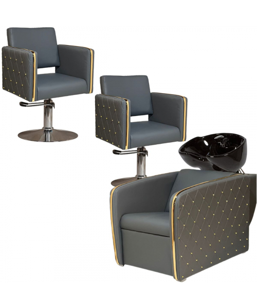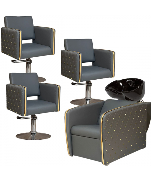 Парикмахерский комплект "Голдиум Нью" - сочетает в себе дерзкий, но продуманный до мелочей дизайн и удобство эксплуатации. Данная модель станет настоящим украшением интерьера. Эргономичная форма сиденья обеспечивает необходимый уровень комфорта.