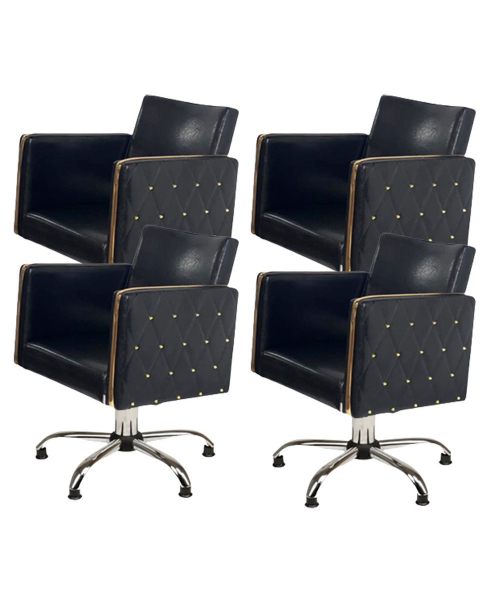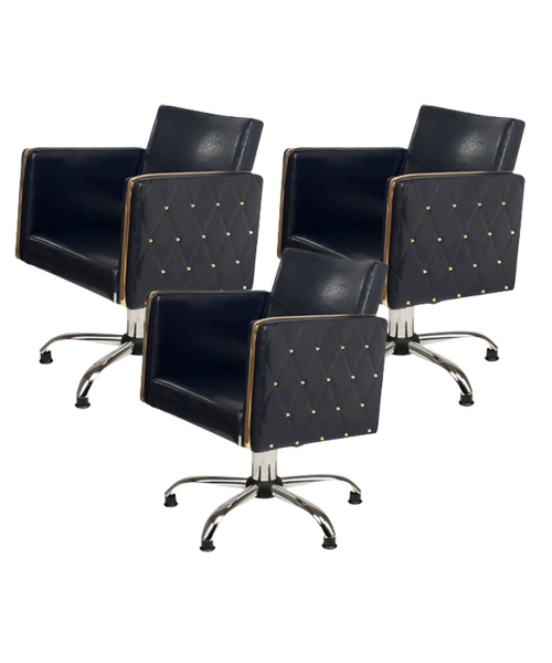 Парикмахерский комплект кресел "Голдиум Блэк П" - Мягкий элемент этого парикмахерского кресла «Голдиум Black» наполнены практичным эластичным поролоном и обтянуты высококачественной искусственной кожей. Вы не потратите на чистку кресла много времени, потому что они не нуждаются в специальной обработке. Строгость линий и массивная оригинальная форма прекрасно сочетается с высокой степенью удобства, которую получит клиент благодаря материалам, использованным при производстве этой модели.