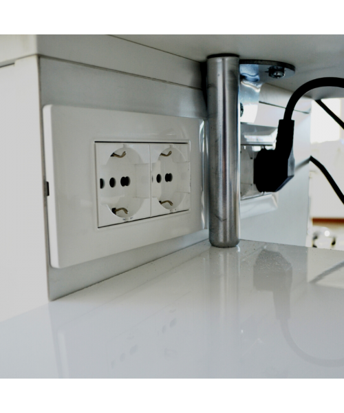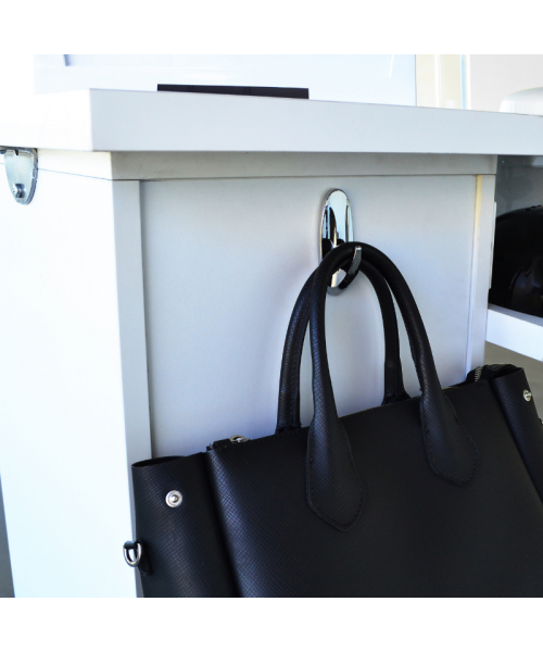 Оснащен столешницей для ламп, 4 розетками и крючком для сумки.