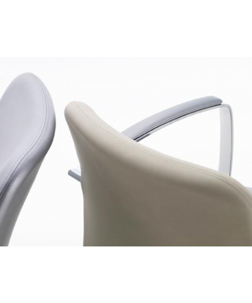 Кресло для клиента, выполнено из высококачественного поролона, каркас обтянут искусственной кожей, алюминиевые подлокотники полностью из металла или с декоративными накладками из кожезама. Комплектуется стационаром, гидроподъемником с основанием на пятилучье.
