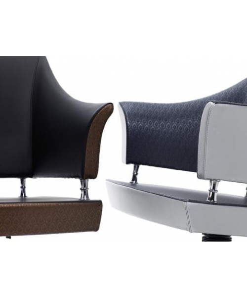 Кресло для клиента оригинальной формы, выполнено из высококачественного поролона, каркас обтянут искусственной кожей, мягкие подлокотники. Комплектуется стационаром, гидроподъемником с основанием на выбор: пятилучье, диск, квадрат.
