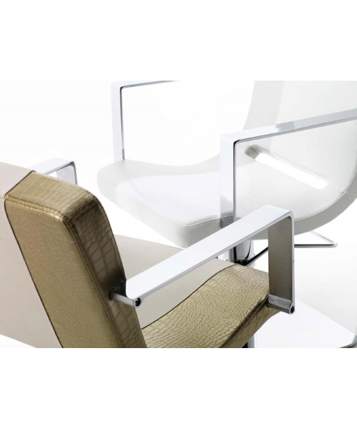 Кресло для клиента, выполнено из высококачественного поролона, каркас обтянут искусственной кожей, плоские аллюминиевые подлокотники прямоугольной формы. Комплектуется стационаром, гидроподъемником с основанием на выбор: пятилучье, диск, квадрат.