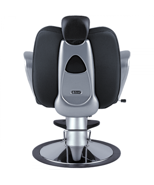 Кресло парикмахерское мужское, на пластиковой базе, выполнено из высококачественного поролона, каркас обтянут искусственной кожей, регулировка высоты гидравлика, регулирующаяся спинка, съемный подголовник, подлокотники из пластика (серебро), подножка.