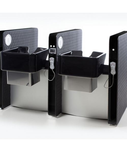 Мойка парикмахерская "VIP LOUNGE 3P" - трехместная с высоким уровнем комфорта и приватной зоной. Мойка оснащена мягкими и комфортными подлокотниками и системой воздушного массажа AIR-SHIATSU. Также мойка с артикулом G-м60002638 оснащена электрической регулировкой сидения, спинной части и опоры для ног. Движения синхронизированные, что позволяет клиенту принять положение "полулежа" обеспечивая максимальный комфорт. Мойка комплектуется глубокой керамической раковиной с регулировкой угла наклона и комплектом смесителя. Обивка - искусственная кожа высшего качества. Отделка боковин - исскуственная кожа коллекции "PRIVACY COLLECTION" или акрил. Окантовка боковин - сталь.