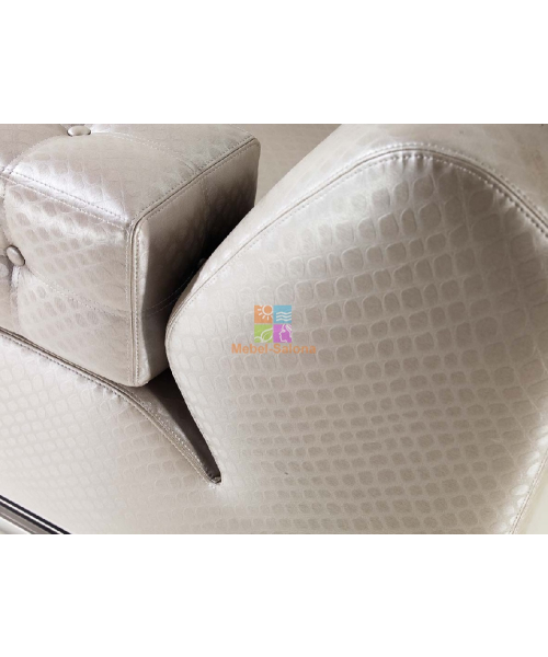 Мойка с креслом, на деревянном каркасе цвета венге, с механической подножкой. Мойка комплектуется глубокой керамической раковиной с регулировкой угла наклона и комплектом смесителя. Мягкие элементы кресла обтянуты искусственной кожей высшего качества. Возможен вариант с массажем/без массажа Цена указана за мойку с белой раковиной и кресло без массажа.