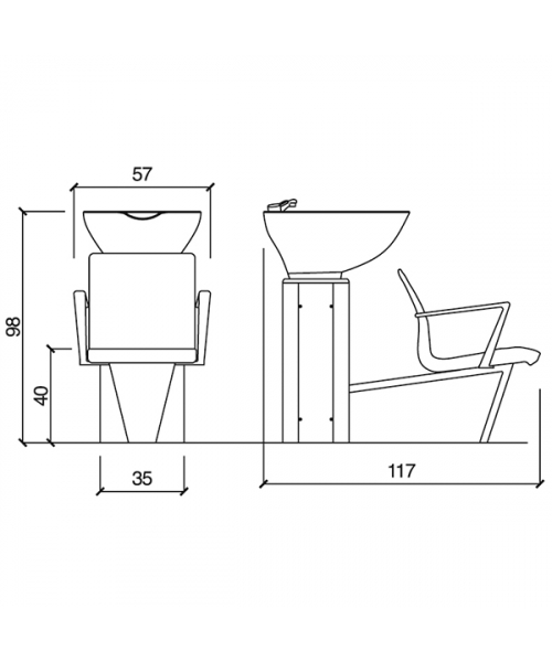 Парикмахерская мойка "Wash Inn Ecoblack" - оснащена металлическим каркасом серебристого цвета и алюминиевыми подлокотниками. Мойка с артикулом G-м60002640 комплектуется глубокой керамической раковиной с регулировкой угла наклона и комплектом смесителя. Обивка - искусственная кожа высшего качества черного цвета (SKAI NERO).