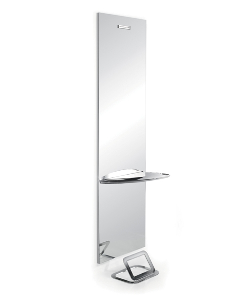 Зеркало парикмахерское "Eco" - прямоугольной формы. Зеркало оснащено алюминиевой столешницей оригинальной формы с отверстием для фена. Крепление к стене.