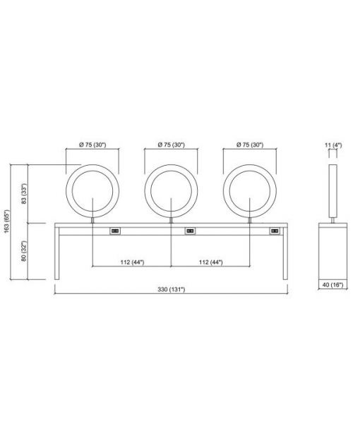 Зеркало парикмахерское "Triobert Wall" - Двусторонний рабочий туалет на шесть рабочих мест. Рабочий туалет выполнен в ламинате белого цвета. Рабочий туалет оснащен зеркалами округлой формы в декоративной раме.