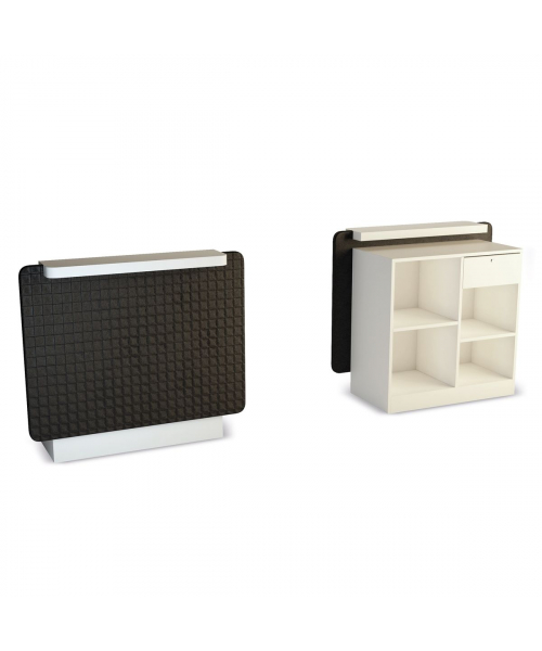 ИталияСтойка администратора "CPT Desk 90" - стойка с артикулом G-м60003169 администратора прямоугольной формы с декоративной отделкой фасада из искусственой кожи черного цвета (NERO CPT - стеганный). Корпус и наполнение выполнены в ламинате белого или черного цвета. Обивка - искусственная кожа высшего качества.