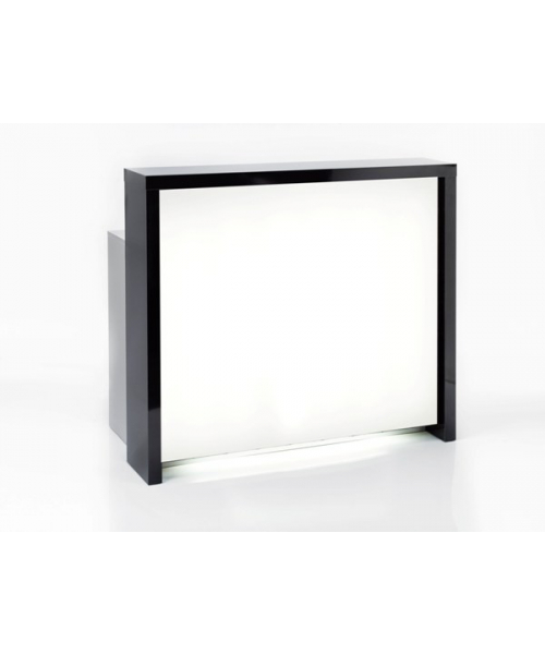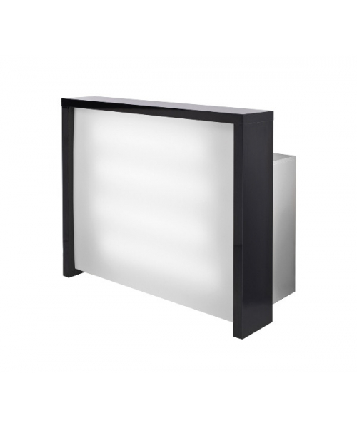 ИталияСтойка администратора "PARTY" - Стойка администратора, фасад выполнен из белого оргстекла с подсветкой и рамы из глянцевого ламината белого или черного цвета. Корпус и наполнение выполнены в ламинате серого цвета.