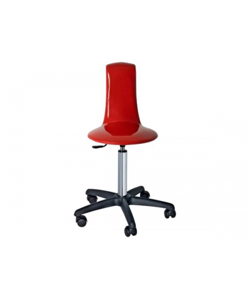 Стул для мастера с высокой спинкой, выполнен из гнутой фанеры в обивке из искусственной кожи, основание пластиковое пятилучье черного цвета на колесах, регулировка высоты пневматическая. Вариант цвета обивки под заказ – широкая цветовая палитра.