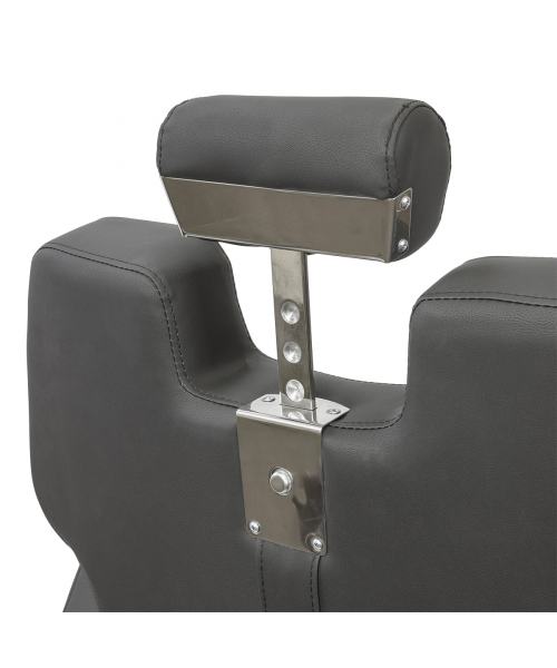 Массивное кресло оснащено удобными подлокотниками и мягким подголовником. Широкое посадочное место обеспечит комфорт во время проведения процедур. Практичная подножка предотвратит усталость ног клиентов.
