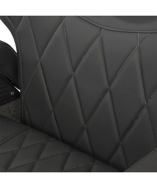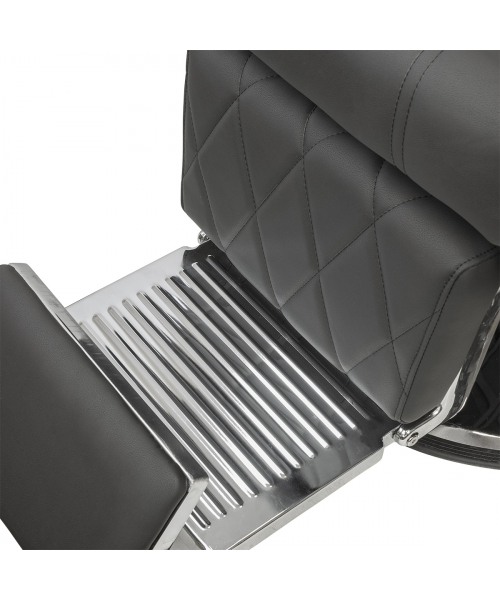 В основании оборудования хромированный стальной диск с резиновым кантом, что обеспечивает защиту напольного покрытия. Каркас изготовлен из металла и многослойной фанеры. Благодаря тяжелой основе и стальному каркасу, кресло устойчиво в любом положении. Хромированные элементы также устойчивы к воздействию влаги и косметических средств. Подлокотники выполнены из ударопрочного пластика. В качестве обивки использована износостойкая экокожа. Материал не подвергается царапинам, не впитывает загрязнения и долго сохраняет красивый внешний вид.
