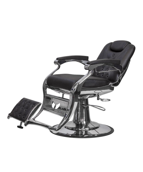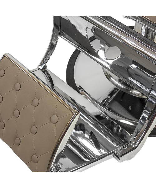 В комфортабельном кресле каждый клиент сможет расслабиться на время проведения процедур. Кресло оснащено большой удобной подножкой с мягкой подушкой, обеспечивая комфорт ногам клиента. Приятное дополнение мебели для барбершопа – практичный держатель для фена, расположенный на нижней части сидения. Стиль кресла подчеркнут декоративной прошивкой и большими пуговицами на спинке и подножке.