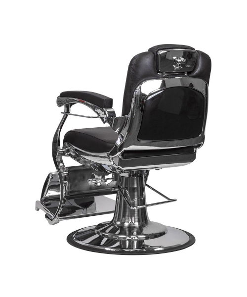 Для регулирования высоты сидения применяется гидравлический подъемник. Подголовник кресла поднимается, что удобно во время процедуры бритья и оформления бороды. С помощью пневматики можно регулировать угол наклона спинки и ножного элемента. Каркас выполнен из качественной стали и установлен на круглую базу. Такой вид опоры очень устойчив и выдерживает большие нагрузки. В качестве обивки использована фирменная экокожа. Материал устойчив к истиранию и долго сохраняет первоначальный внешний вид. Наполнитель изготовлен из упругого поролона.
