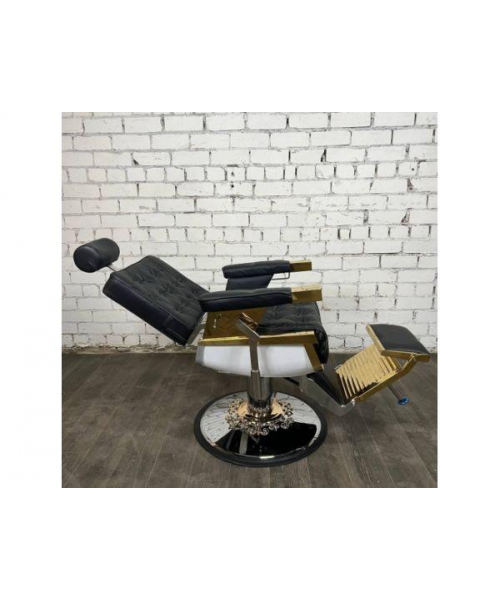 Барберское кресло «Мигель Голд» задаст премиальный статус любому салону благодаря золотому оформлению, винтажное и в то же время брутальное мужское кресло, которое будет служить вам бесконечно.