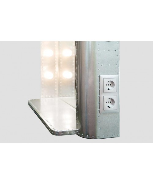 Каркас мужского барбер зеркала Valter выполнен из массива дерева и облицован листовой оцинкованной сталью. В зеркале установлены 10 матовых ламп с цоколем Е14 (входят в комплект поставки). Яркость подсветки регулируется диммером: это позволяет установить комфортную интенсивность освещения на ваше усмотрение. Зеркало оснащено двумя розетками для подключения электрооборудования.
