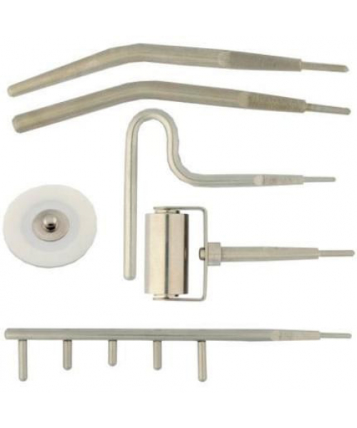 В комплект входит: 2 держателя электродов и 11 насадок для микротоковой терапии (изображены на фотографии), а так же 30 одноразовых электродов для миостимуляции.
