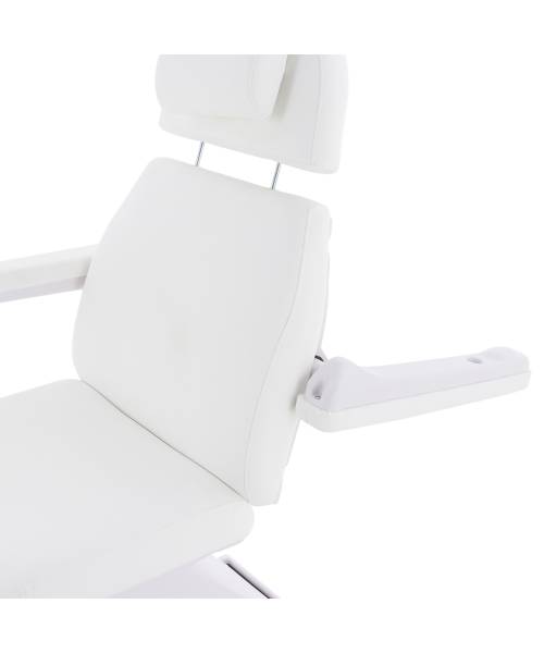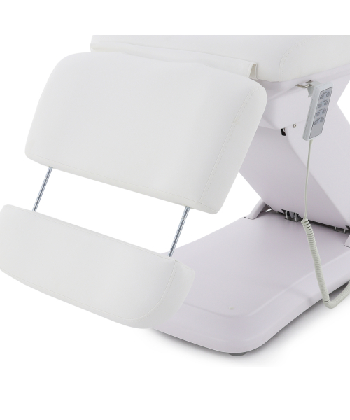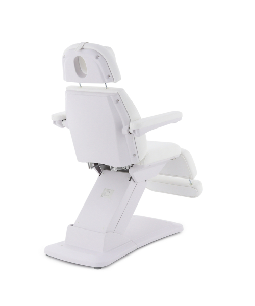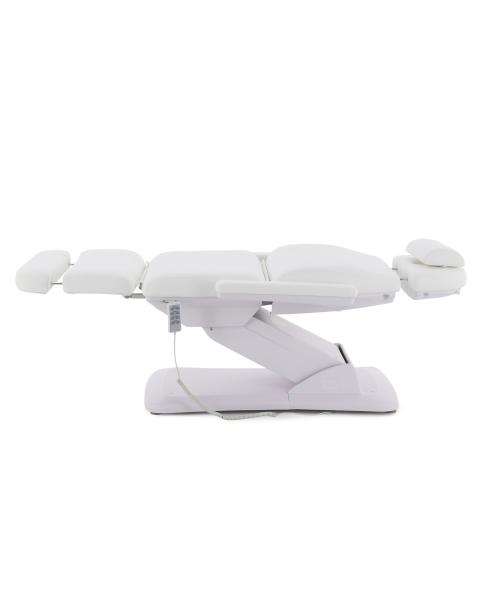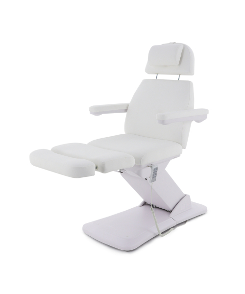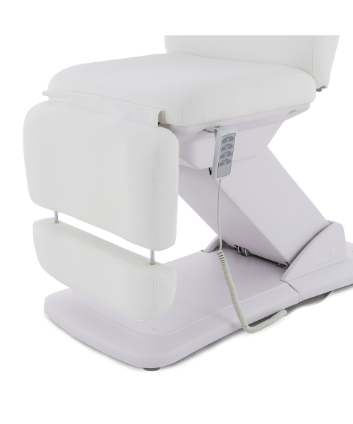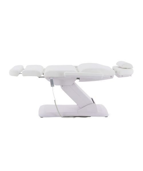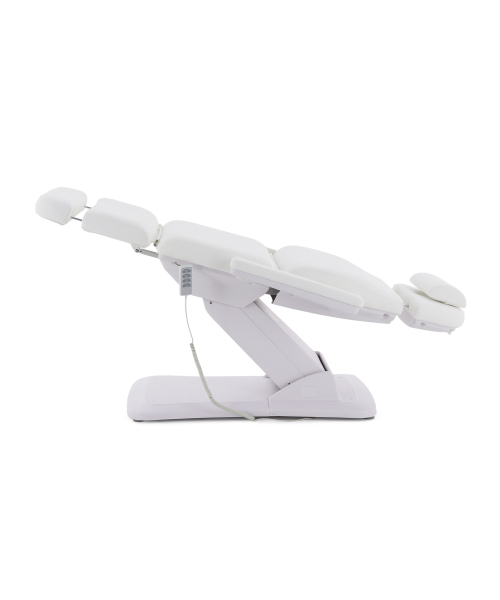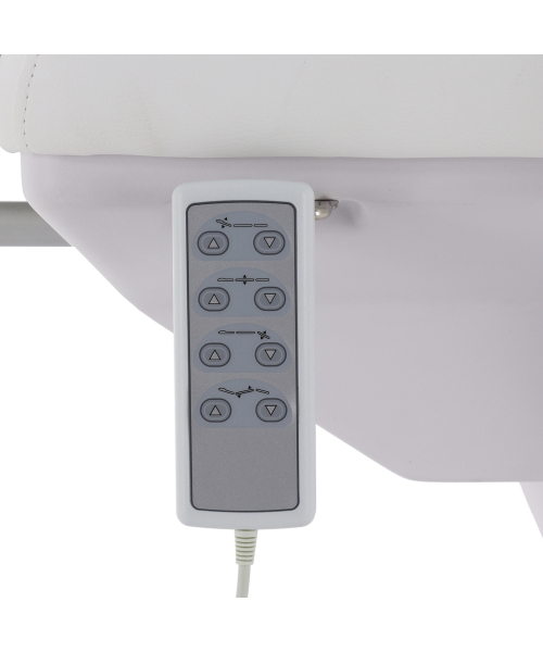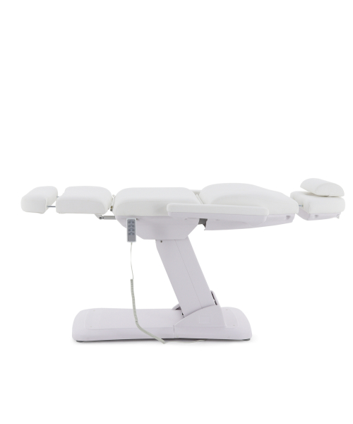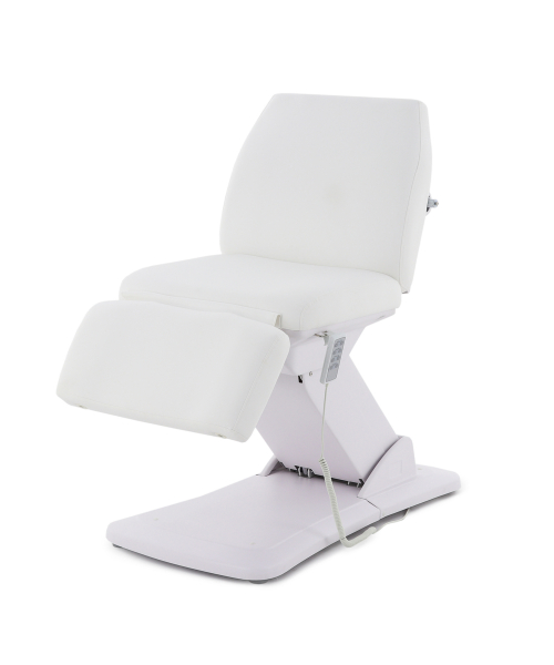 Изделие имеет прочную стальную раму, которая без труда выдерживает нагрузку в 180 кг. Учитывая, что средний вес россиян варьируется от 69 до 75 кг, кресло подойдёт клиенту любой комплекции. Модель имеет многосекционное ложе и 4 мотора для удобной регулировки угла наклона подвижных элементов. Широкий диапазон настроек позволяет специалисту подбирать оптимальное положение для каждого вида задач. Управление оборудованием производится с помощью удобного, интуитивно понятного пульта, оснащённого мембранными кнопками для защиты от влаги.