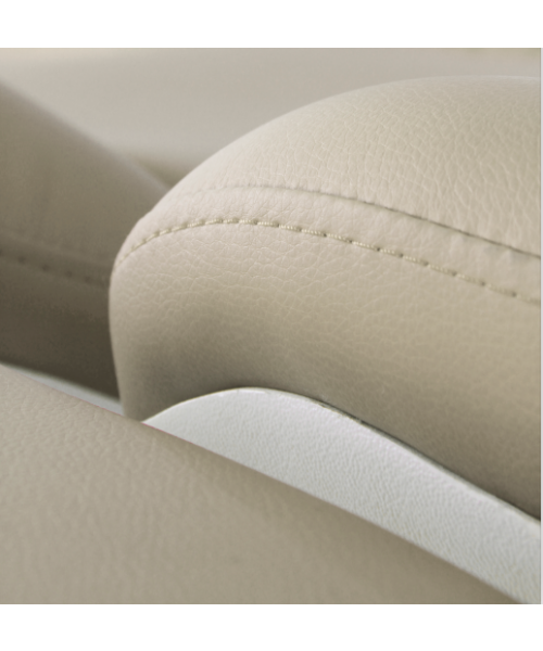 Кресло раскладывается в горизонтальное положение, оснащено анатомичным сидением, выдвижным подголовником, а так же модель имеет два откидывающихся подлокотника. Основание выполнено из прочного металла, закрыто декоративным пластиком.