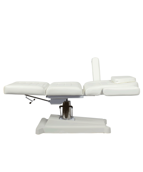 Оно оснащено усиленным гидравлическим подъемником, с помощью которого мастер быстро и легко настроит необходимую высоту для каждой процедуры. Каркас кресла изготовлен из прочного металла с влагоустойчивым покрытием. Основание каркаса декорировано ударопрочным пластиком белого цвета.