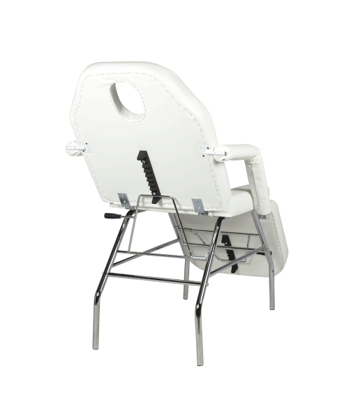 Механическая регулировка спинки и подушки под ноги обеспечивает раскладывание кресла в полностью горизонтальное положение. Для необходимой функциональности в спинке есть отверстие для лица.