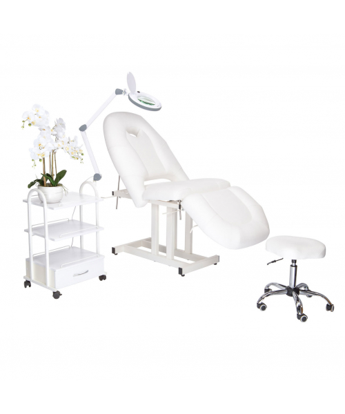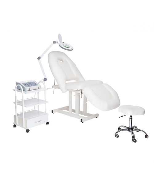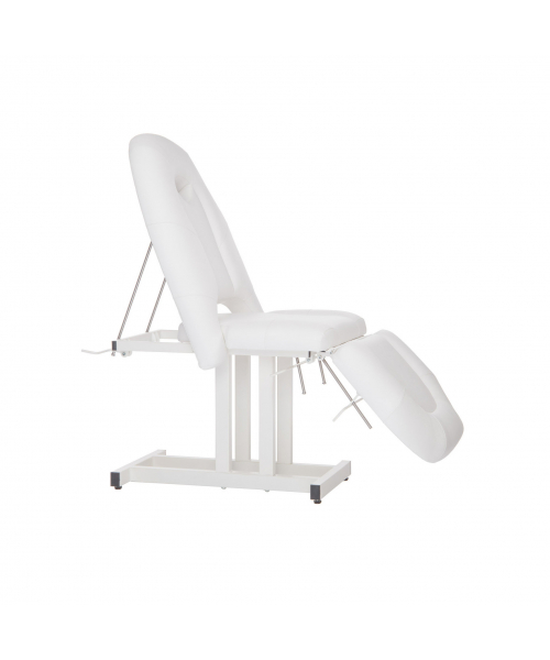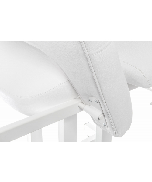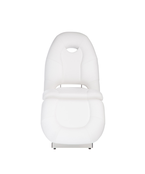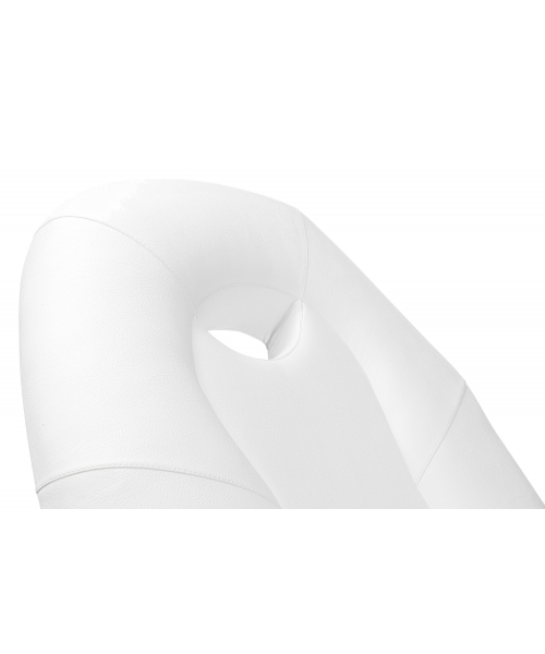 Уникальная ширина кресла. Самое широкое кресло на российском рынке. Именно благодаря ширине кресла конструкция избавлена от подлокотников. Эргономичная конструкция. Поясничные и боковые поддержки и эргономичные углубления, расслабляют клинета во время процедуры не дают затекать спине. Подходит для любых процедур. Высокая регулируемая спинка, обеспечивающая фиксацию головы, позволит мастеру провести любые процедуры.