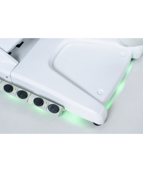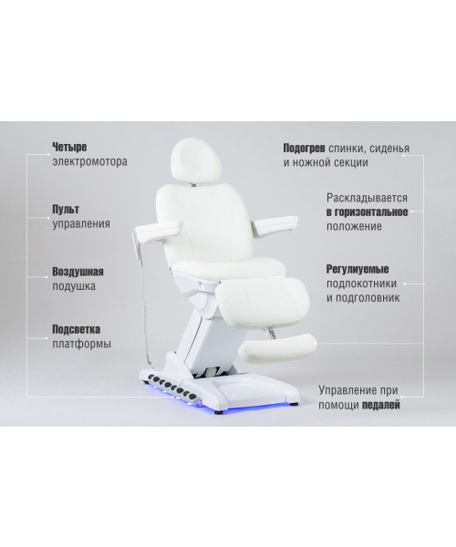 Оборудовано четырьмя электромоторами для регулировки высоты сиденья, наклона спинки, сиденья и ножной секции.