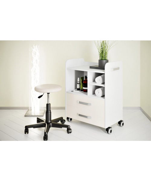 Тележка "Ergo Combi" идеально подойдет для педикюрного или косметологического кабинета. Столик оснащен двумя ящиками с направляющими полного выдвижения и нишей с полками разного размера.