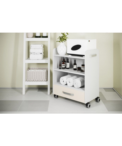 РоссияКосметологическая тележка "Ergo Simple" - это прочный корпус из ЛДСП, три вместительные полки, ящик и прорезиненные колеса с тормозной системой.