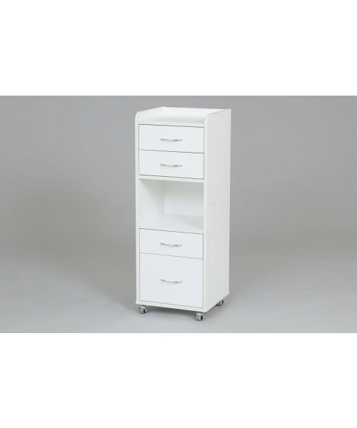 РоссияКосметологическая тележка "ТК-3" изготовлена из практичного и прочного ЛДСП белого цвета. Изделие имеет четыре ящика различной высоты, что позволяет мастеру разместить инструменты и оборудование как малых, так и больших размеров. Верхняя полка оснащена бортиком, который предотвращает падение предметов при перемещении тележки.
