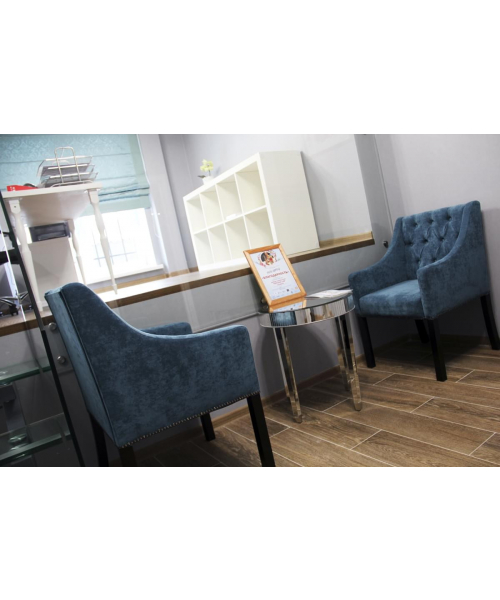 Элегантное кресло с простеганной спинкой и плавной линией подлокотников.