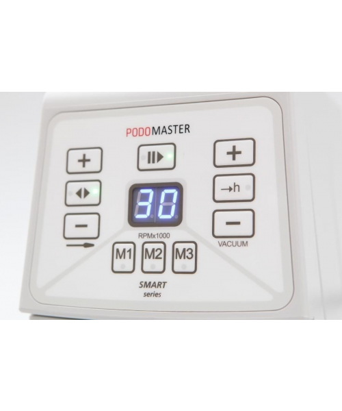 Удобный и легкий аппарат для педикюра "Podomaster Smart" с мощным микромотором. Корпус аппарата выполнен из металла с защитным покрытием. Спереди расположен цифровой дисплей с кнопками для изменения настроек. Неоспоримым преимуществом этой модели является наличие встроенного пылесоса, благодаря которому воздух в помещении будет оставаться чистым. Для удаления пыли предусмотрены специальные съемные мешки из антибактериального материала. Выполнить замену мешка мастер сможет самостоятельно, не прерывая рабочий процесс.