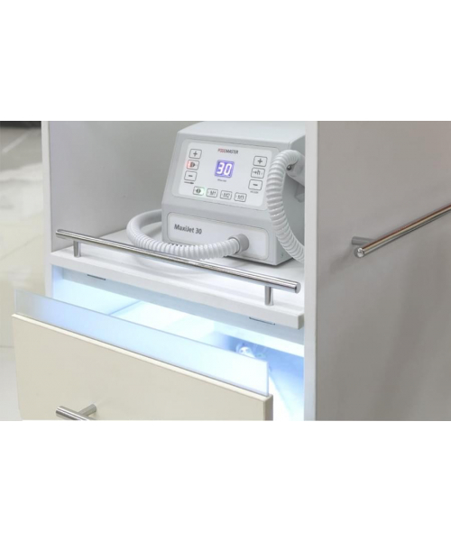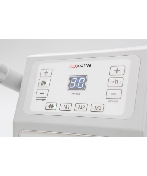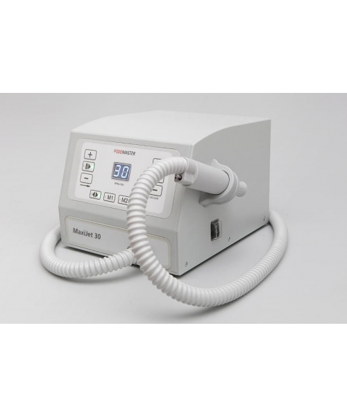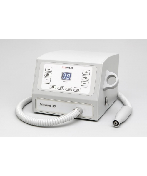 Педикюрный аппарат Podomaster MaxiJet 30 является современной моделью косметологического оборудования, предназначенного для использования в профессиональных косметологических центрах и салонах красоты. Встроенный пылесос позволяет собирать пыль, образовавшуюся во время процедуры, в специальный мешок. Устройство оснащено ультралегким наконечником, цифровым дисплеем, счетчиком часов работы и выключателем на ручке с силиконовым колпачком, защищающим от пыли, Мотор вращается со скоростью 30 000 оборотов в минуту, но с помощью специальной, педали, подключаемой к устройству, мощность можно регулировать самостоятельно.