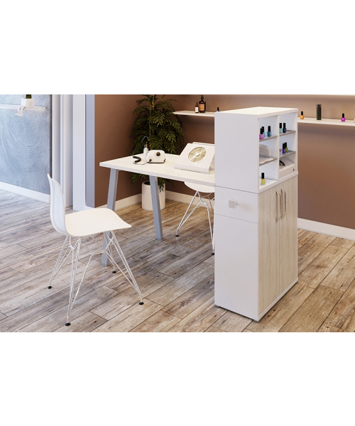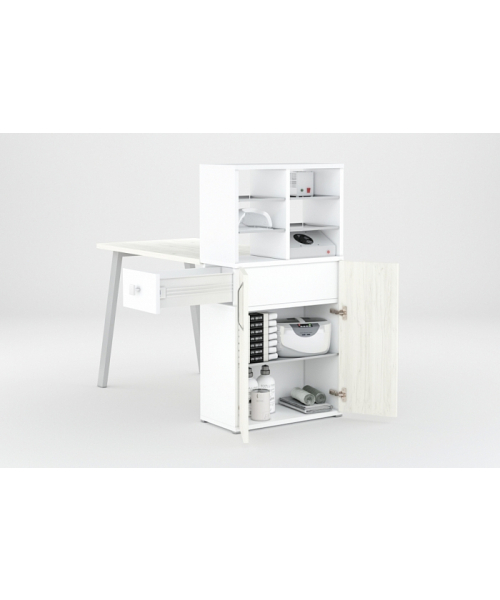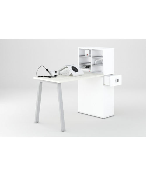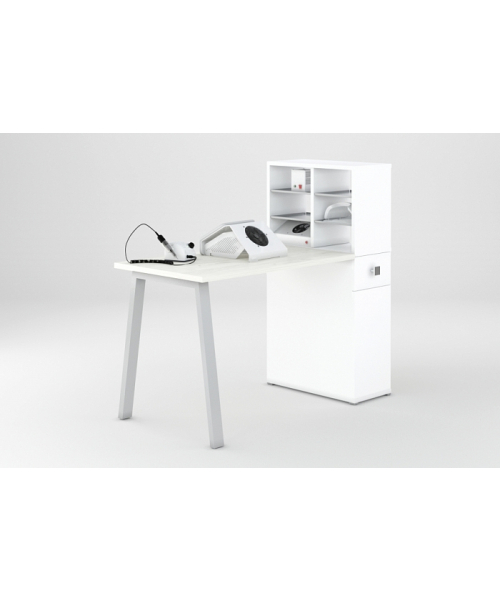 Маникюрный стол "FORMIX" - включает в себя распашной шкаф для хранения, совмещённый с вместительной настольной подставкой и глубоким выдвижным ящиком для быстрого доступа к самому необходимому.