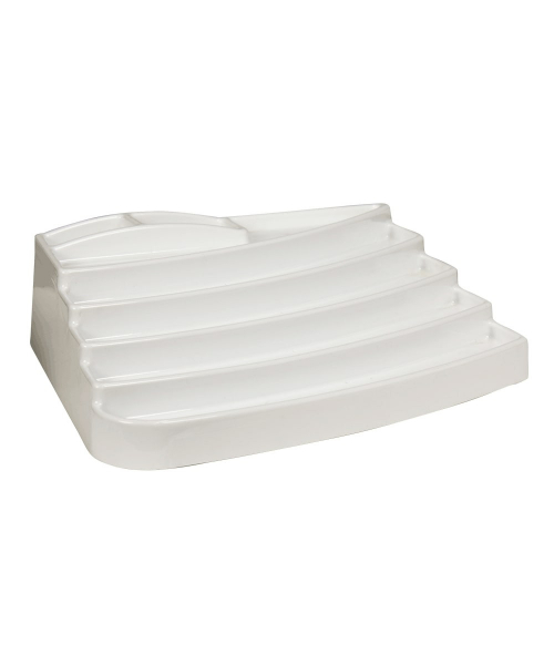Пятиярусная подставка под лаки – это не только удобный аксессуар, но и стильный предмет декора. Она выполнена из качественного прочного пластика, устойчивого к воздействию косметических и дезинфицирующих средств. Подставка состоит из пяти полочек, размещенных на разной высоте, с защитными бортиками для удобного расположения лаков. На ней можно разместить достаточно большое количество лаков и все они будут хорошо видны. С подставки можно свободно взять любой лак и поставить его обратно, не опрокинув остальные. Это сделает процесс выбора подходящего цвета комфортным и приятным.