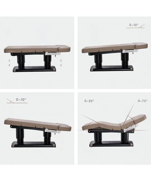 Массажная кушетка "HM-003" - с 4 двигателями (высота,подставка для ног, спинка) обладает отличной прочностью, максимальный вес нагрузки составляет 200 кг. Светлая обивка изделия легко и быстро чистится, не теряя при этом внешнего вида от частых обработок и дезинфекций. Доступна дополнительная опция памяти.