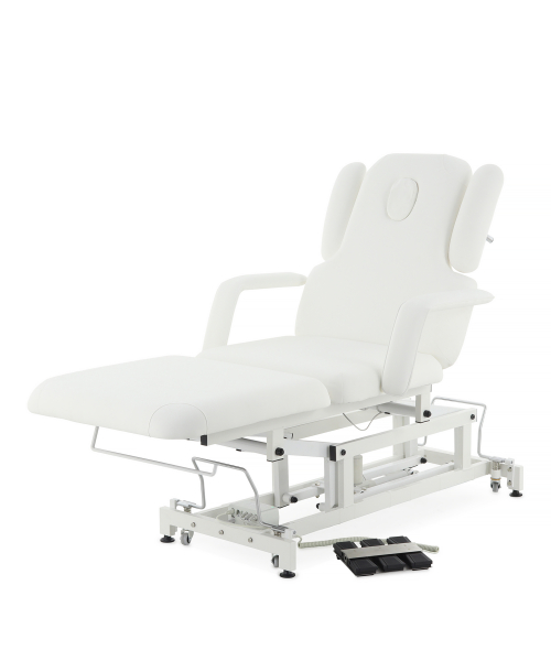 Ложемент модели делится на две секции, которые управляются электромеханизмом, работающим от дистанционного пульта. Также с его помощью можно менять не только угол наклона (диапазон 0-65 градусов), но и высот.