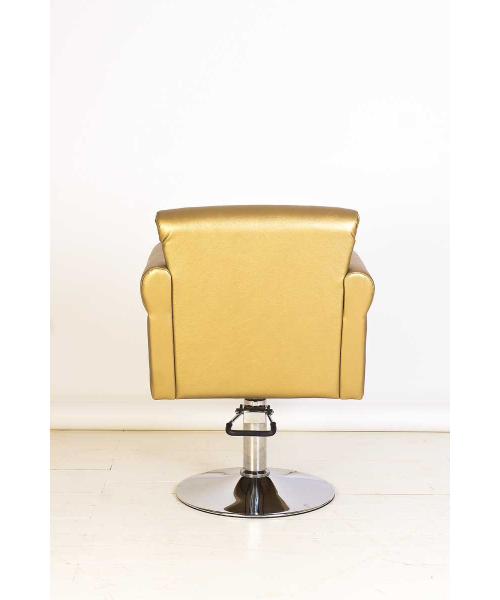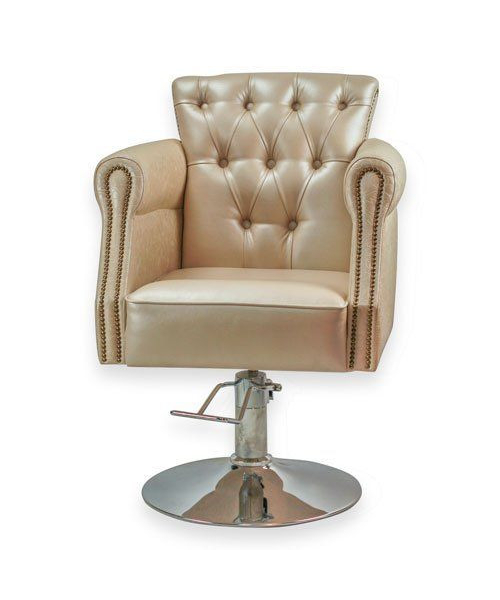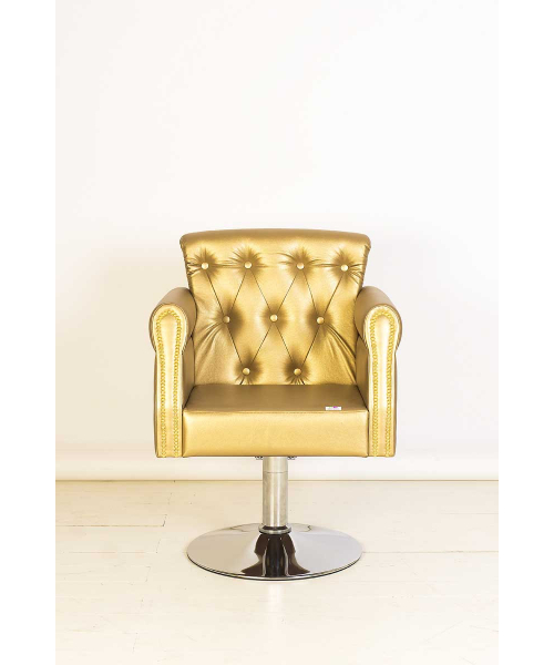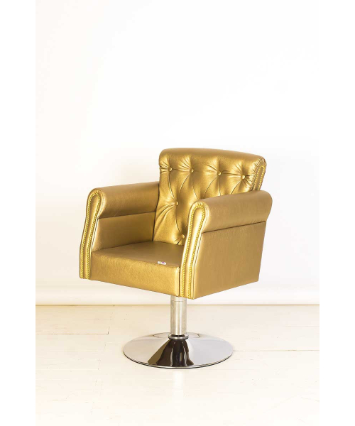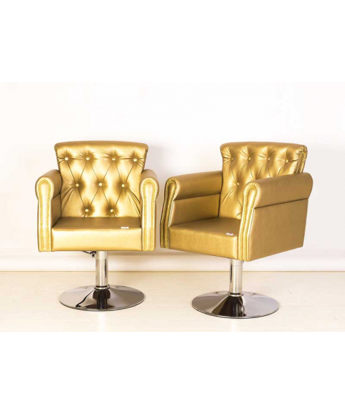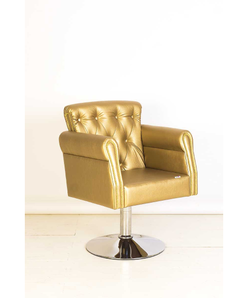 Кресло декорировано каретной стяжкой и мебельными гвоздиками золотистого цвета.