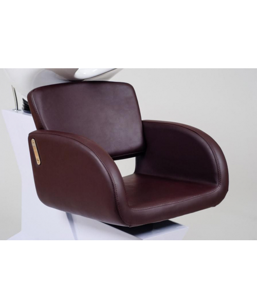 Парикмахерская мойка SD-6682 с глубокой керамической раковиной на стальной базе и удобным креслом.