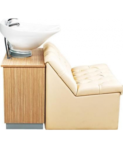 Широкое кресло очень эффектно выглядит и больше похоже на небольшой диванчик. Белоснежная мойка отлично сочетается с контрастной по цвету полкой, на которой мастер может удобно разместить полотенца и другие предметы.Качественные материалы и обивка позволяют мастеру не беспокоится о возможном загрязнении изделия. Все материалы легко очищаются при помощи обычных средств.