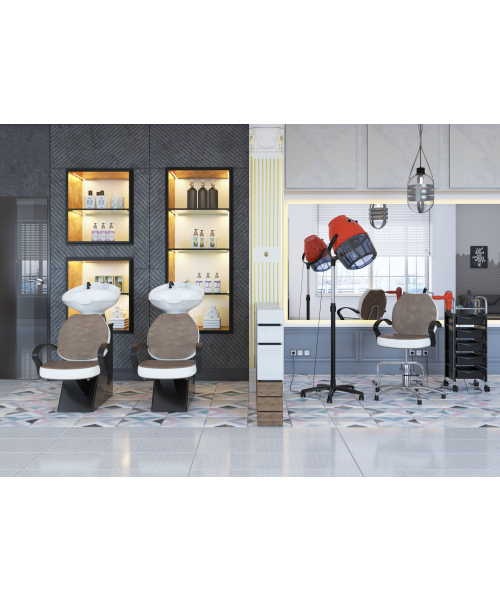 Парикмахерская мойка "ЕЛЕНА" с креслом "СОЛО Модерн" - это удобная и элегантная модель, которая отлично впишется в интерьер Вашего салона. Стильный дизайн, продуманная конструкция, качественные материалы – все это гармонично сочетается в данной модели. В базовую комплектацию товара включена профессиональная керамическая раковина среднего размера. По желанию Вы можете внести изменения в конфигурацию и выбрать другую раковину (черную среднюю, белую или черную глубокую).