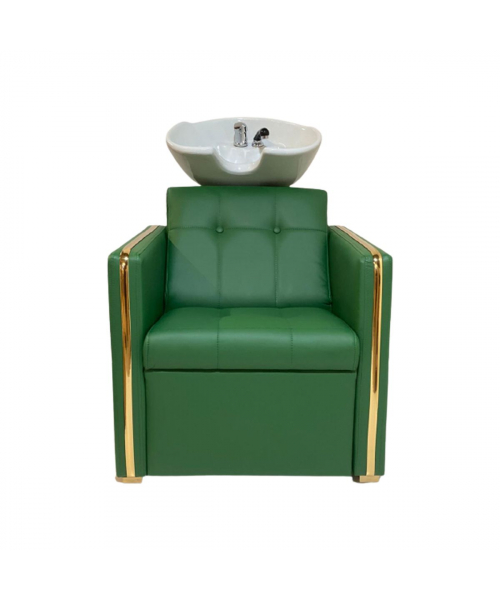 Парикмахерская мойка "Rolex Green" - с использованием модной сегодня стяжки по основанию, отлично впишется и в классический, и в современный интерьер – ее преимущество в универсальном исполнении и практичной цветовой гамме. Раковина удобна для мытья волос любой длины – она достаточно глубокая и с легкостью подстраивается под рост клиента. Кресло изготовлено из качественной и долговечной экокожи и имеет четкие геометрические формы. Визуальную лаконичность дополняет стильная стяжка по всему объему – это придает модели уют и элегантность. Широкое сиденье приятно порадует клиента любой комплекции.