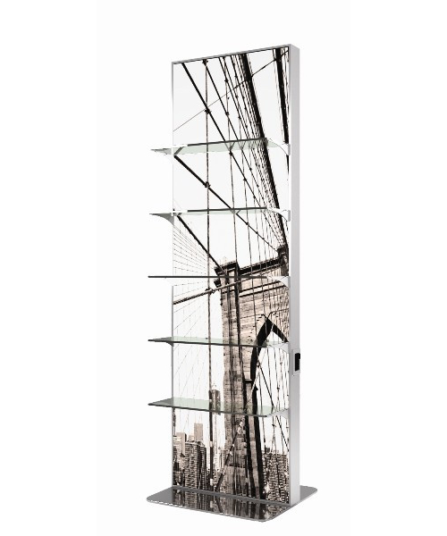 Вариант 3 - Двусторонняя витрина, крепление к полу. С одной стороны витрина со стекляными полками и выбранным клиентом изображением. С другой стороны выбранное клиентом изображение.