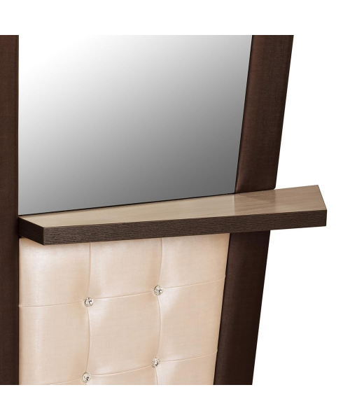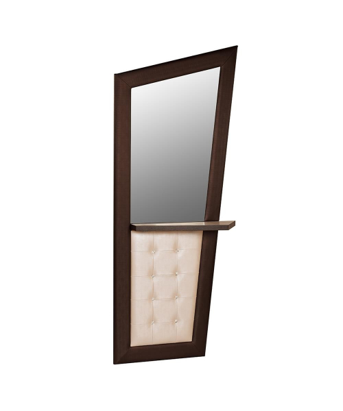 Парикмахерское зеркало представляет собой ассиметричную конструкцию из ламинированного ДСП в декоративной раме из искусственной кожи.
