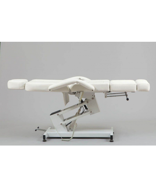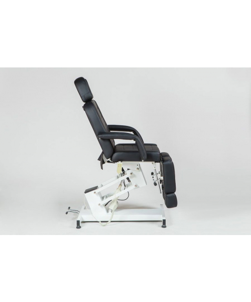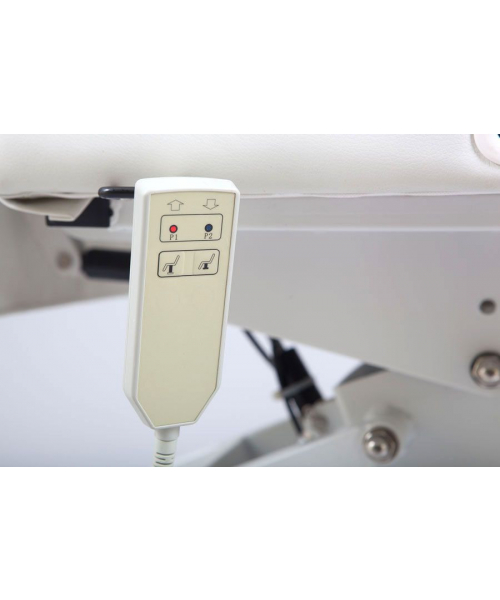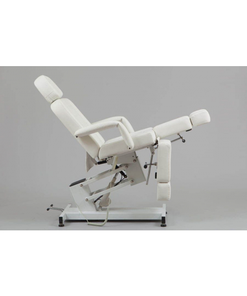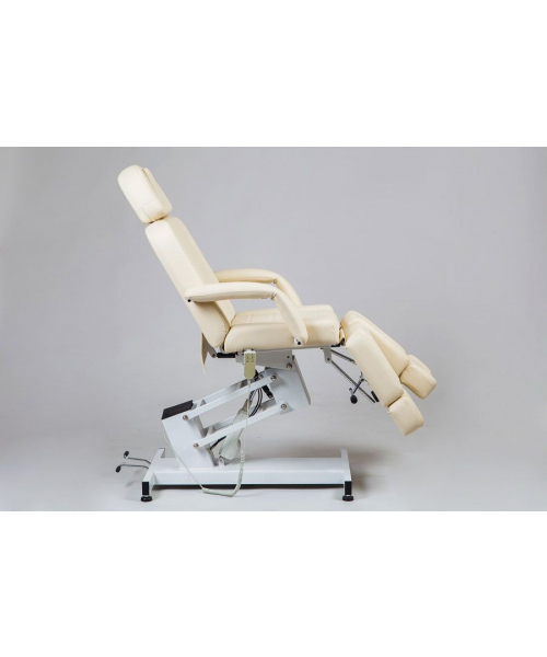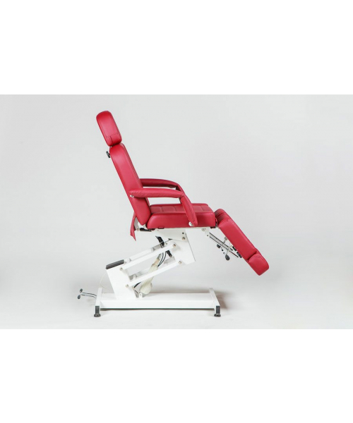 Педикюрное кресло оборудовано электрическим подъемником, посредством которого настраивается его высота, а также пневматическим механизмом для регулировки наклона спинной секции. С помощью рычага можно изменять положение каждого из подножников. На выбор покупателя предоставлено несколько вариантов цветов обивочного материала