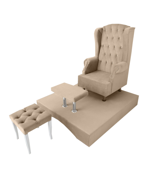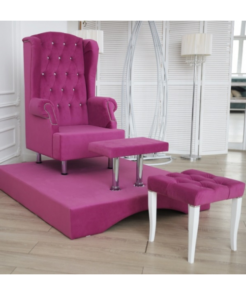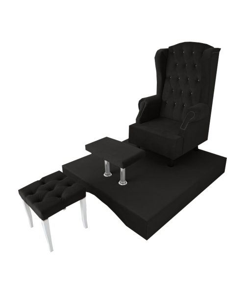 В комплект входит: кресло трон, подиум, стул мастера, поставка для ног. Можно использовать для педикюра, маникюра, спа процедур и др.
